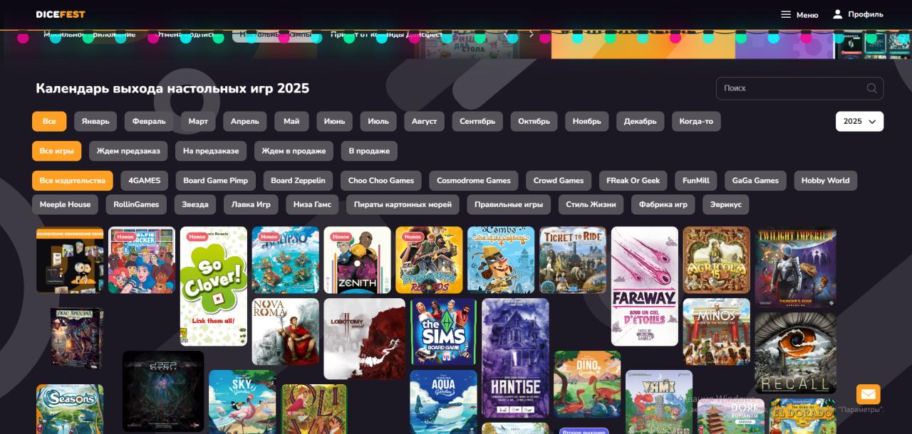Всем привет! Меня зовут Владимир, вы на канале «Dicefest», простите, привычка) Но возможно вы и правда меня знаете как ведущего ютуб-канала или как ведущего подкаста. Если не знаете, то будем знакомы)В конце 2023 года я чутка устал от того, что для блогерской жизни приходится мониторить все сайты или паблики издательств в ВК, чтобы быть в курсе, что у кого анонсировано, выходит или уже вышло. Поискал, сходу нашел несколько таблиц (и здесь, на Тесере тоже) со списками анонсированных игр, но не шибко актуальными. Поделился этой грустью с женой, на что она неожиданно предложила сделать свою таблицу, и не таблицу, а сразу сайт. Дизайн решили заказать, потому что мы нихрена не дизайнеры) Жена - фронт, я - ПМ, если кому-то интересно. На бэк тоже нашли человека за отдельную плату. И понеслась! Но недалеко, потому что изначальная идея с таблицей быстро стала обрастать новыми идеями. А что если прикрутить возможность добавить игру в избранное, чтобы только по ней статусы получать? А может, тогда и ЛК сделать? Но для избранного как будто мало, надо рассылки добавить! Вообщем, от изначальной идеи таблицы мы сразу ушли, как вы поняли.
