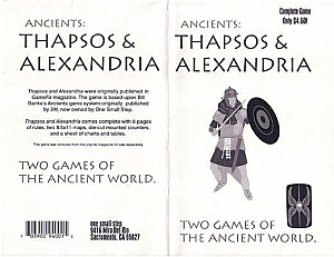 The set comprises two complete games using Bill Banks's classic "Ancients" game system of hoplites and charioteers. The Thapsos scenario is a relatively simple meeting of infantry, one side with archers, the other with elephants. The Alexandria scenario adds trireme combat in addition to the infantry. The game includes 100 die-cut counters, two 8.5"×11" full-color maps, tables, scenarios, and rules.