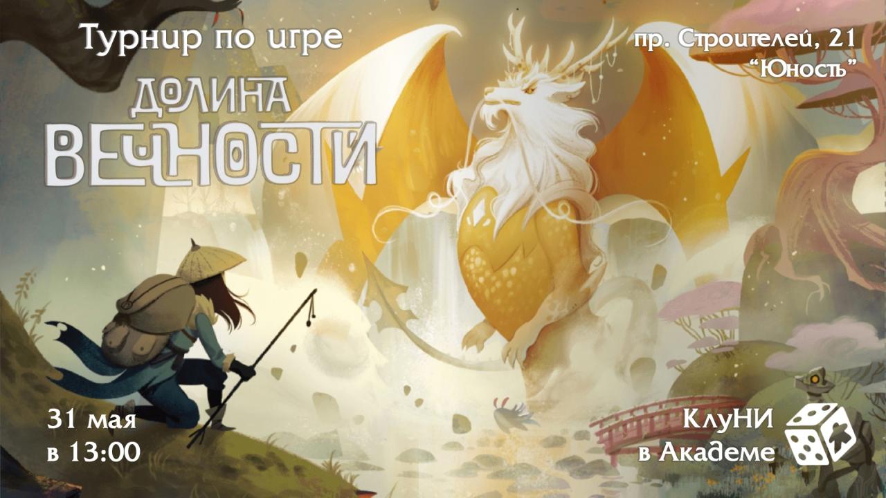31 мая КлуНИ в Академе проводит в Новосибирске турнир по игре «Долина вечности». Собираемся в субботу, 31 мая, на чердаке арт-резиденции «Юность» на пр. Строителей, 21. Начало — в 13 часов. В 12 часов можно сыграть тренировочную партию. Система турнира — швейцарская, с двумя-тремя турами и финалом. Двум победителям достанутся призы от клуба: игры «Смешанный лес» и «7 чудес. Дуэль». Участие бесплатное, приглашаем всех желающих от 12 и старше! Регистрация на турнир по ссылке: https://forms.gle/qmzUzGrtv1fRYnTY8