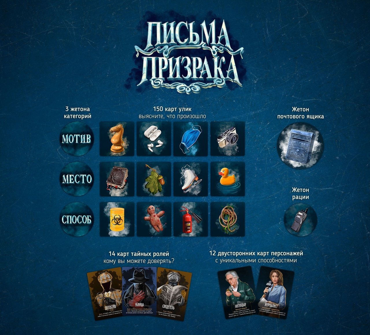 Письма призрака – детективная настольная игра с тайными ролями на дедукцию, блеф и ассоциативное мышление.