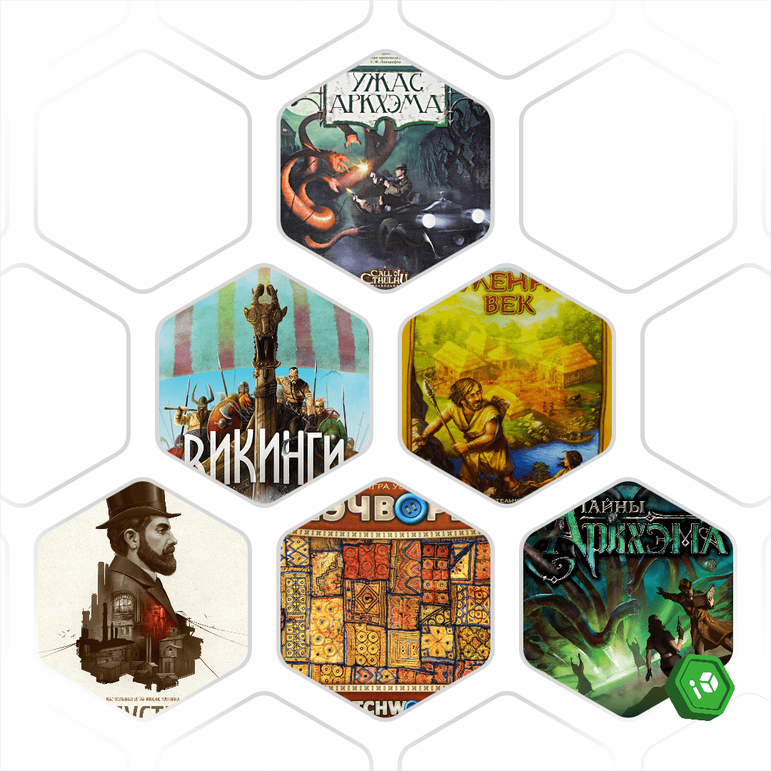 Ужас Аркхэма. Вторая редакция. Игра, которая показала нам, какими могут быть настольные игры. Мы реально не ожидали, что можно так много всего впихнуть и навертеть. Атмосфера, безысходность. Сумасшедшие правила. В первой партии больше времени провели именно в правилах, чем в самой игре. Но со временем нюансы усваивались, играть хотелось все больше и больше. Каждую неделю партия или две. И все не надоедало.