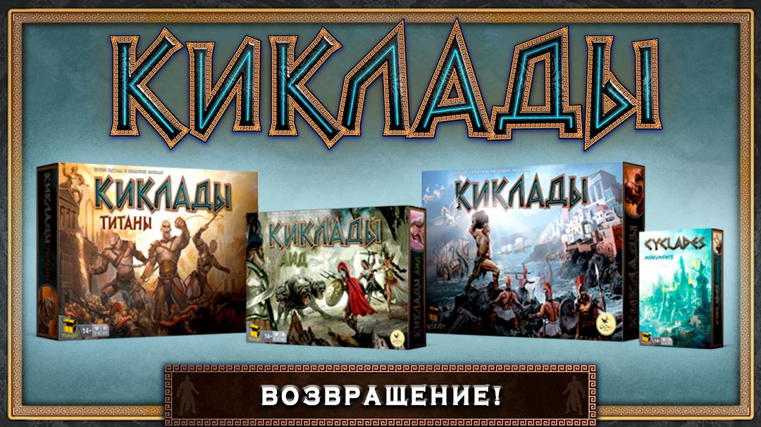 На этот раз мы запускаем акцию «Чем раньше, тем дешевле», по которой вы можете до 14 мая оформить предзаказ по следующим ценам: игра «Киклады» — 4240 рублей, дополнение «Аид» — 2540 рублей, дополнение «Титаны» — 3390 рублей, а дополнение «Монументы» — 1275 рублей. Накопительная скидка работает. Каждого 14 числа каждого следующего месяца цена будет повышаться.