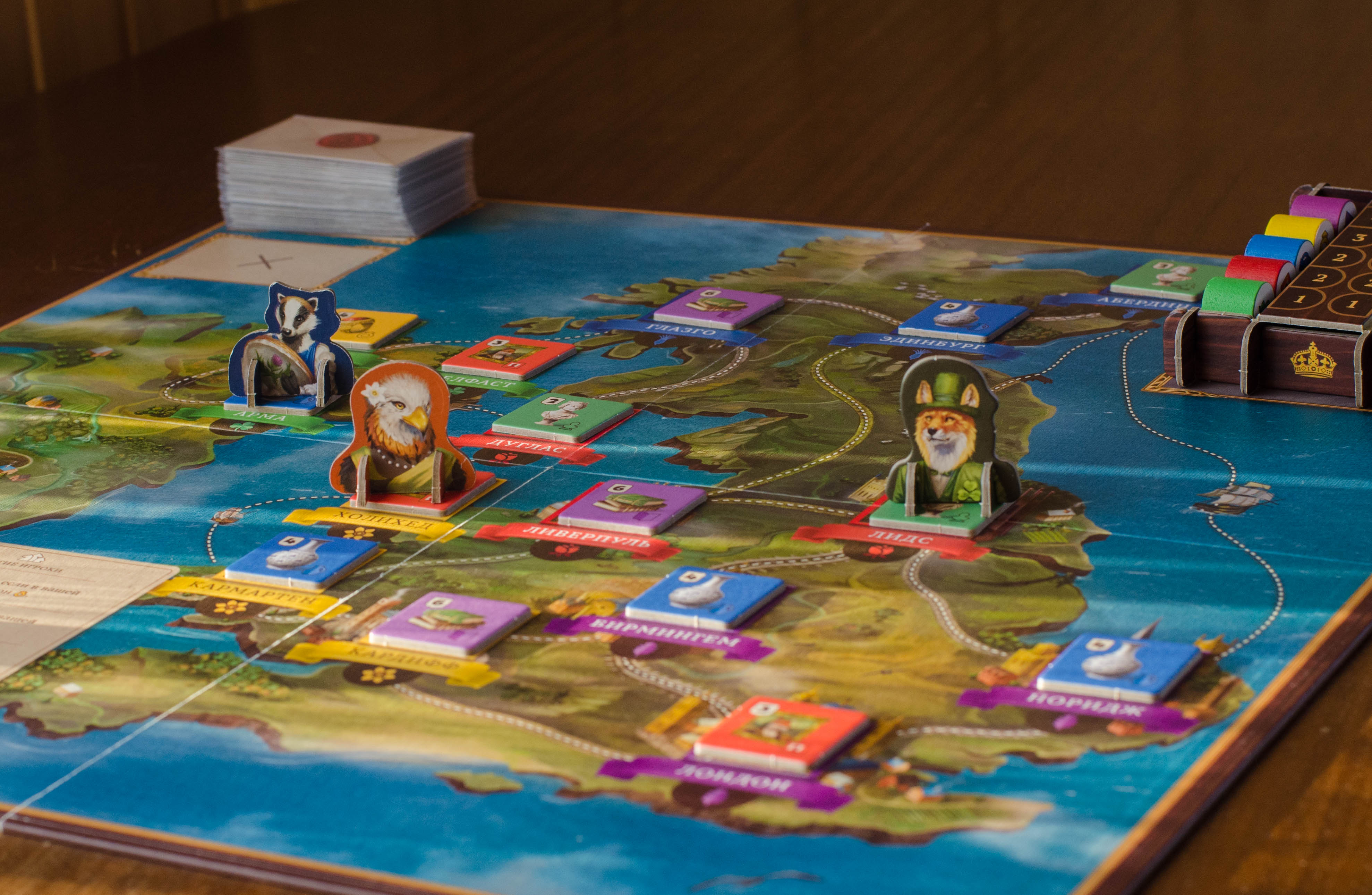 Ганзейский союз. Впервые на русском вышло в виде переиздания со всеми дополнениями. Довольно конфликтное классическое евро на построение цепочек.