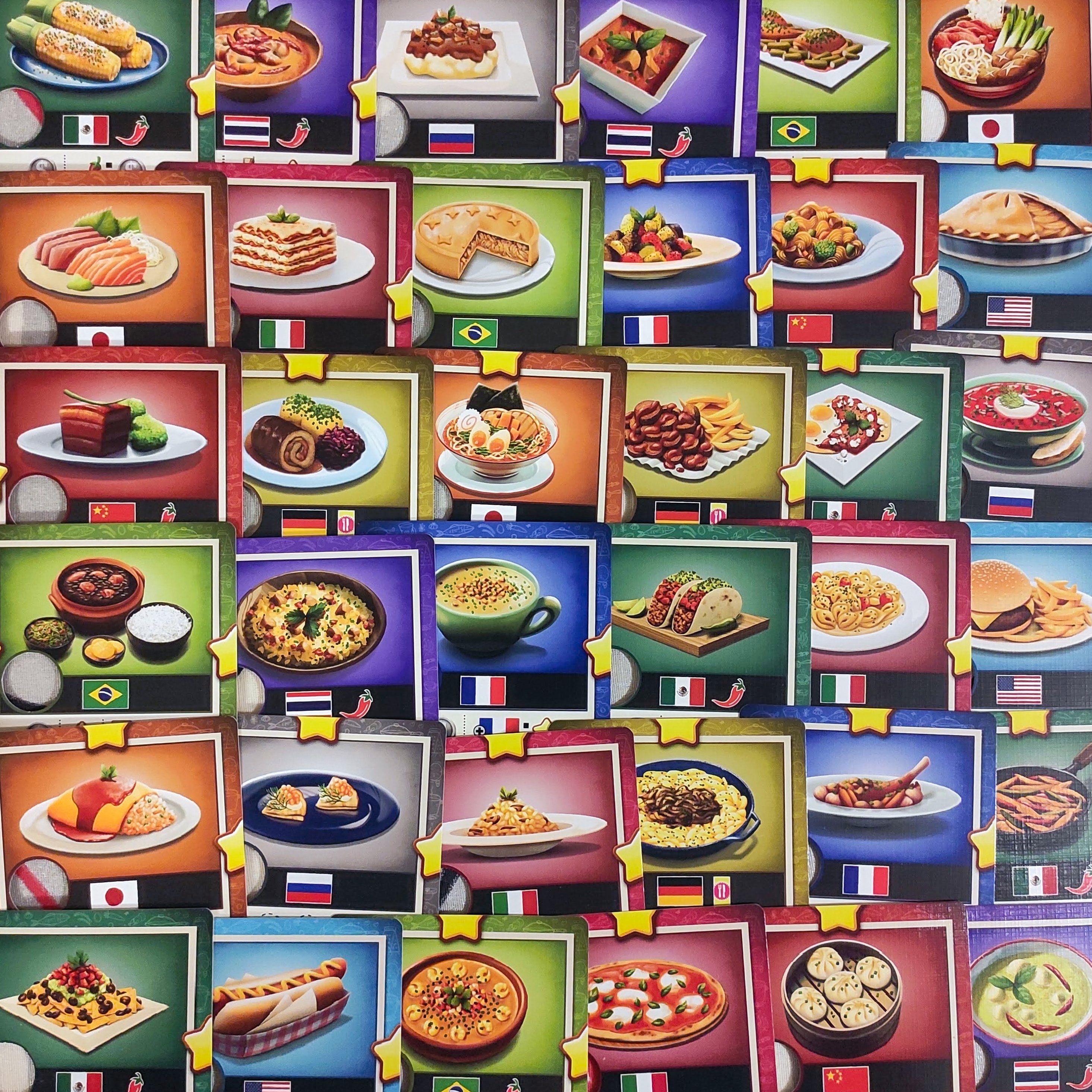 Что особенно радует в игре — так это 10 видов кухонь (оля-ля, ля кучина!), среди которых есть русская, немецкая, японская, и, разумеется, моя любимая — итальянская! Блюда нарисованы аппетитно, но повторяются. Кстати, в рамках партии вам доступны кухни лишь пяти стран и два шефа, поэтому даже наши две сыгранные подряд партии очень разнились!