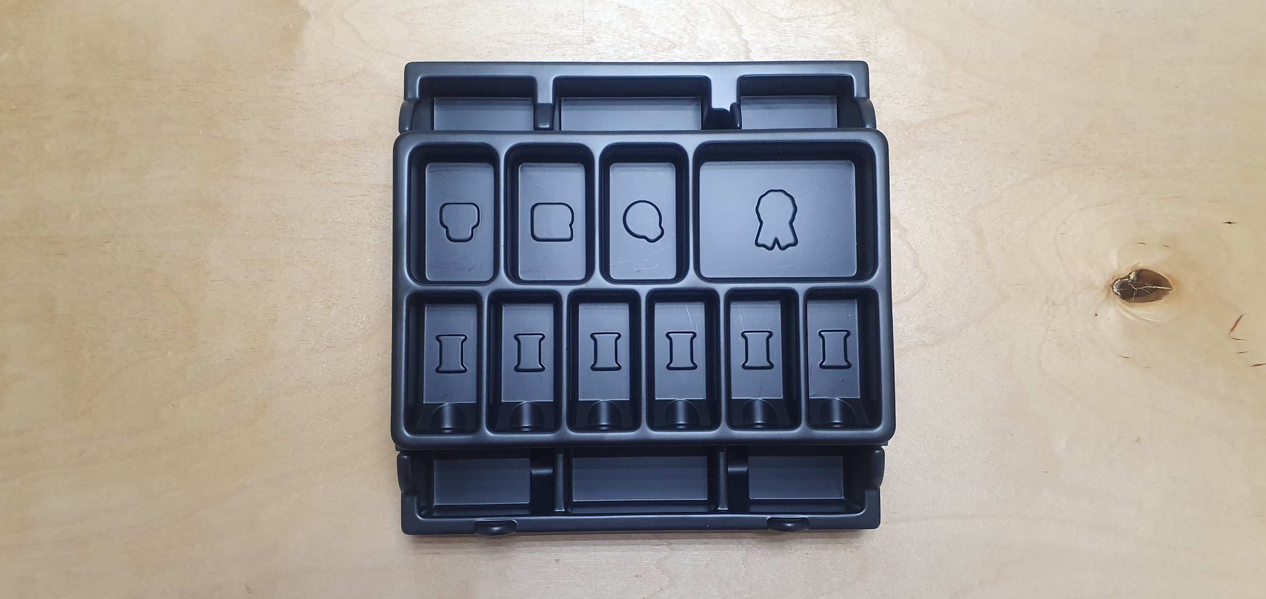 Есть, правда и ложка дегтя. Отдельно хочется упомянуть идущий в комплекте органайзер (точно такой же будет и в локализации от Звезды, поэтому все ниже сказанное будет актуально для русской версии). Он прекрасен, на самом деле. По крайней мере, в своем классе. Толстый пластик, продуманная компоновка, все компоненты в отдельных ячейках. Все сделано на высоком уровне. Но из-за одного нюанса мы незамедлительно достали его из коробки и заменили органайзерами от Meeple House.