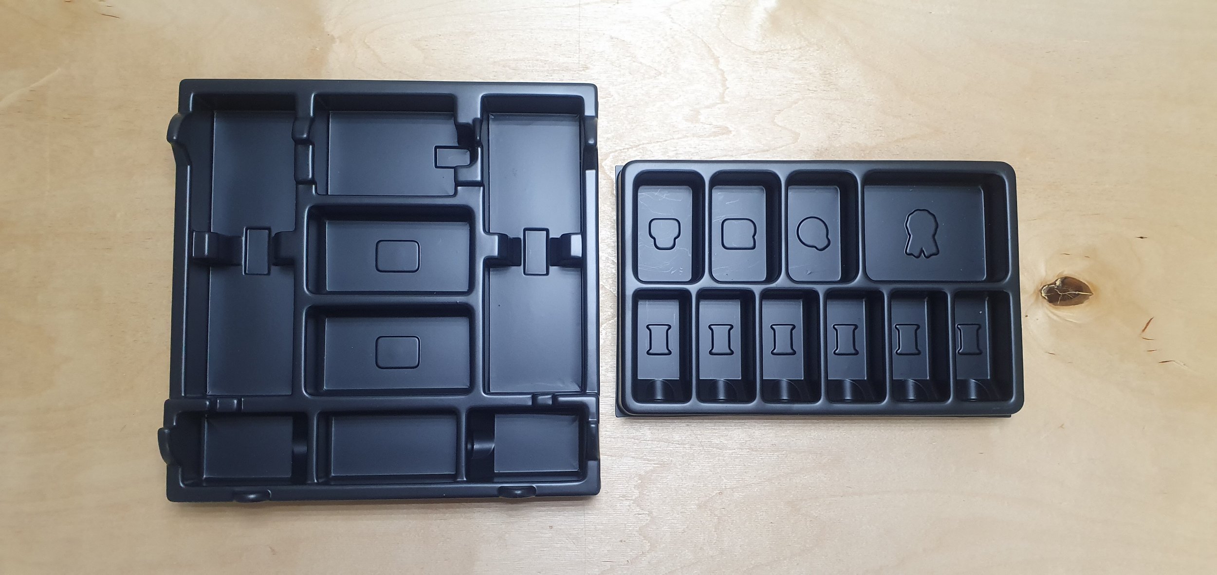 Используются для хранения компонентов игроков. В одной половинке все фишки и жетоны одного цвета, в другой — 40 единиц денег, которые всегда выдаются на старте. Таким образом, если в конце игры вы уложите туда необходимое количество денег, то потом ускорите себе старт. Сверху карта-памятка прижимается крышкой.