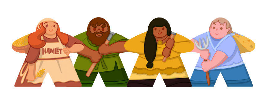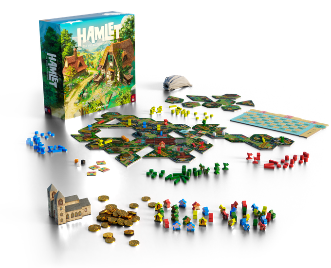 Шекспир ни при чём, игра буквально о том, чтобы сделать из деревни (собственно Hamlet) село, то есть построить церковь. Заодно вы будете строить различные здания, перевозить между ними ресурсы и улучшать их, чтобы заработать денег, построить ещё здания или внести свой вклад в постройку церкви (и приближение конца партии). Главная фишка игры в тайлах разных необычных форм. Ещё прилагаются симпатичные миплы, в том числе осликов. Какой-то новый уровень Каркассона (соединять дороги с дорогами всё ещё надо).
