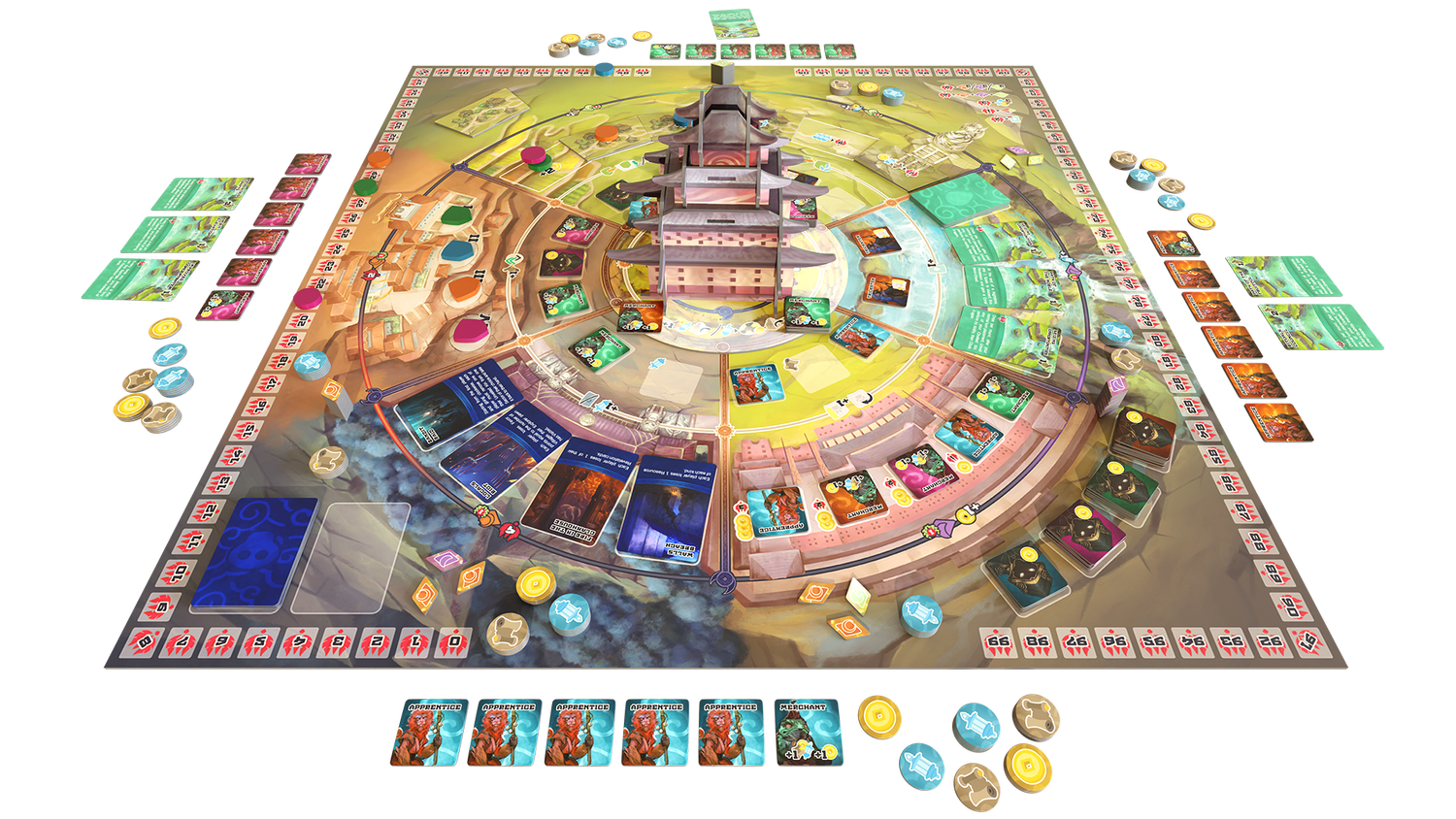 Когда читаешь описание этой игры, выпадаешь в осадок, потому что просто не успеваешь осознавать... фантастический восток, звери с суперспособностями, многоуровневое поле, вращающаяся доска. Это всё вообще как?