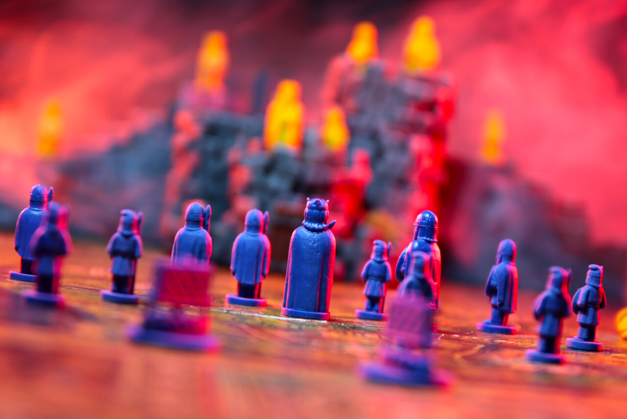 Итак, есть 4 королевства (с допом можно играть впятером), сражающихся за земли, но вообще-то не только за них. Цель игры — собрать определенное количество "дальков".