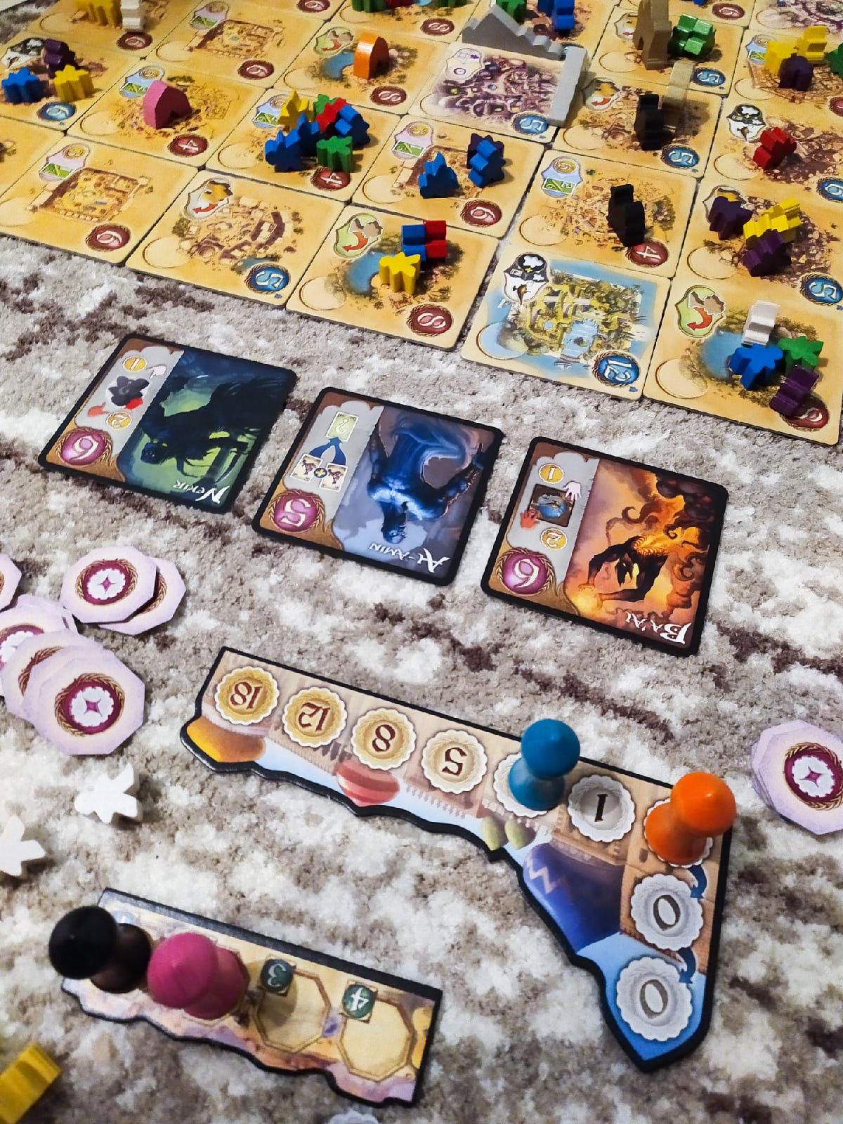 2) 5 племен. Неожиданно чудесная семейная игра. Абстрактная, красивая, легко и быстро играется. Модульное поле обеспечивает разнообразие, поддерживаемое дополнительными возможности из дополнения Five Tribes: The Artisans of Naqala. Надо докупить еще и Whims of the Sultan. Хотя есть одно нарекание - с дополнением игра играется дольше.