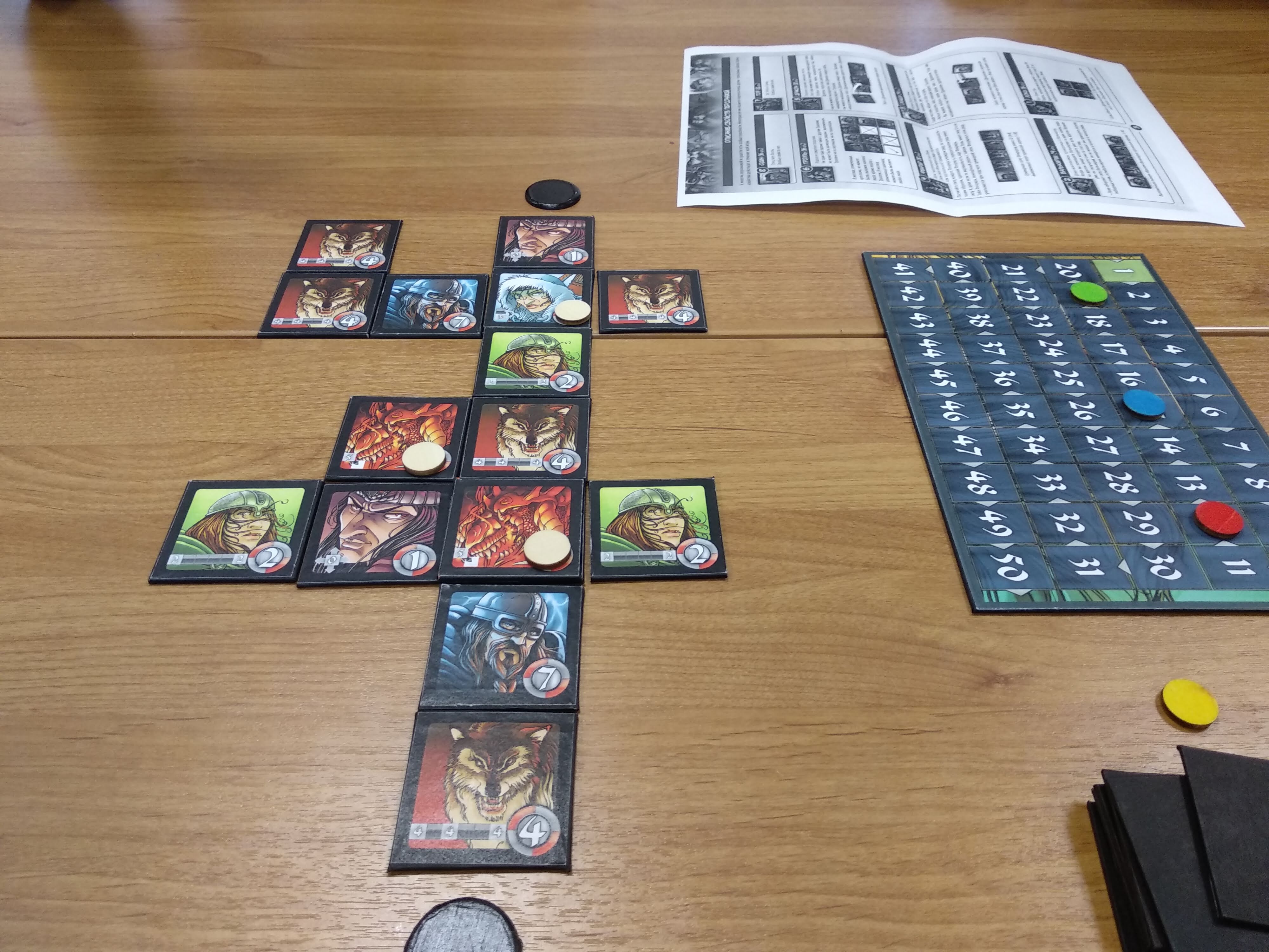 Фенриры оказались очень интересны геймплейно, они превращаются в стаю в ряду и значение выкладываемого волка является сразу суммой всех волков в ряду.