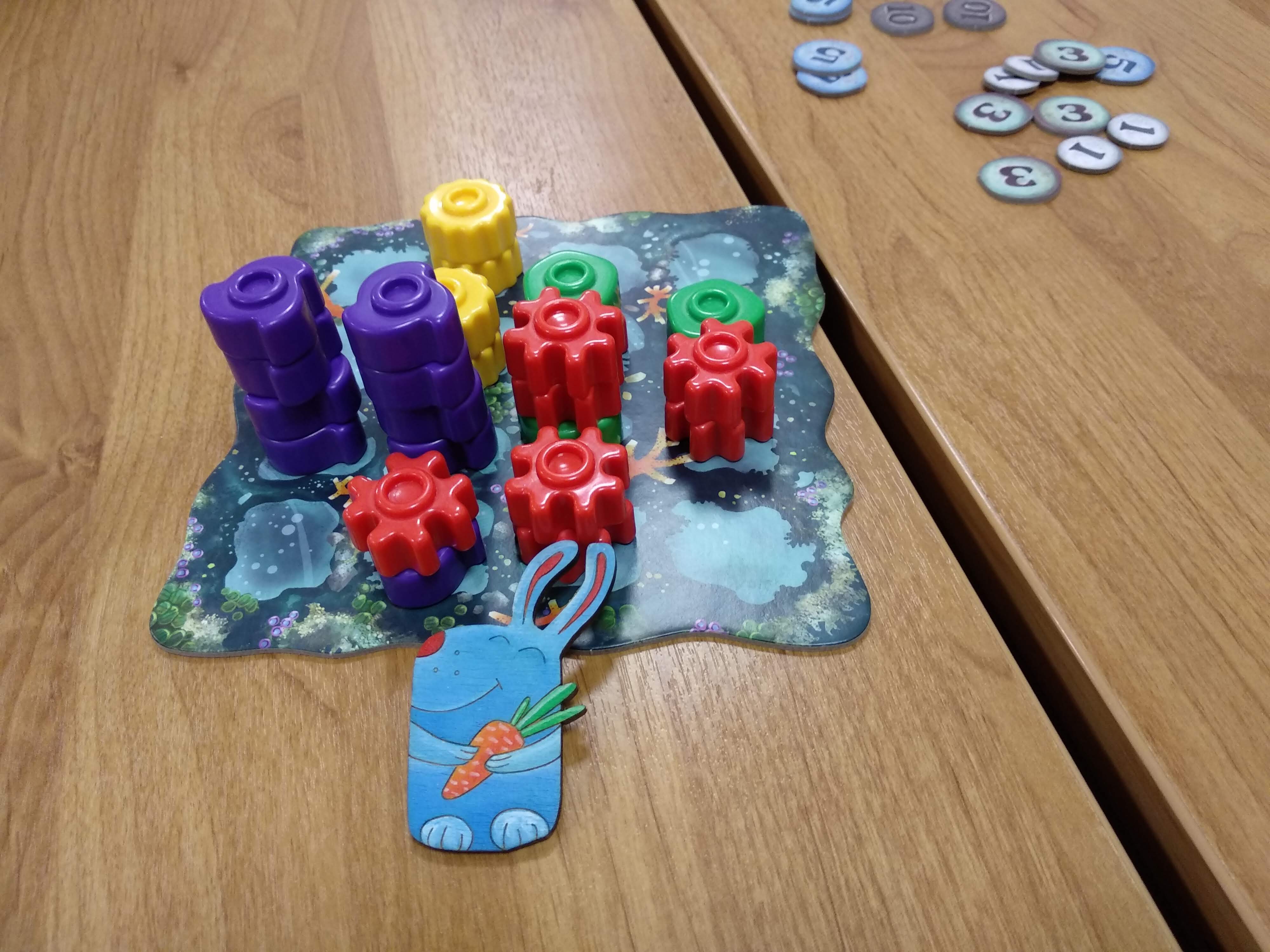 Детали игры вовсе напоминают Lego Duplo, ох уж эти затерянные воспоминания. Разделил 2-ое место с Алисой, а владелица коробки ушла домой с победой за 65 очков.