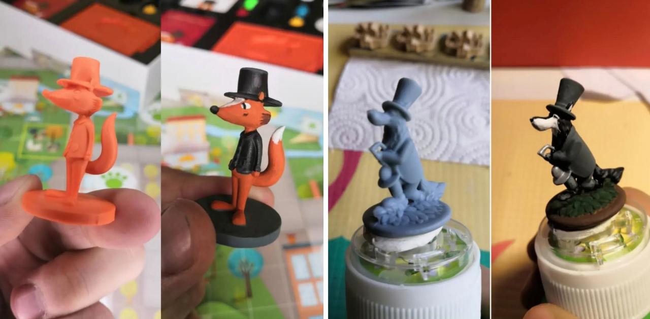 Не сказать, что я был в восторге от результата, но и то, что могло бы быть хуже, тоже понимал. И всё, Рубикон пройден, начнём с простого - детские игры. "Коварный лис" и "Коварный волк" для этого подходили лучше всего, ну и это были единственные детские игры с миниатюрами в коллекции.