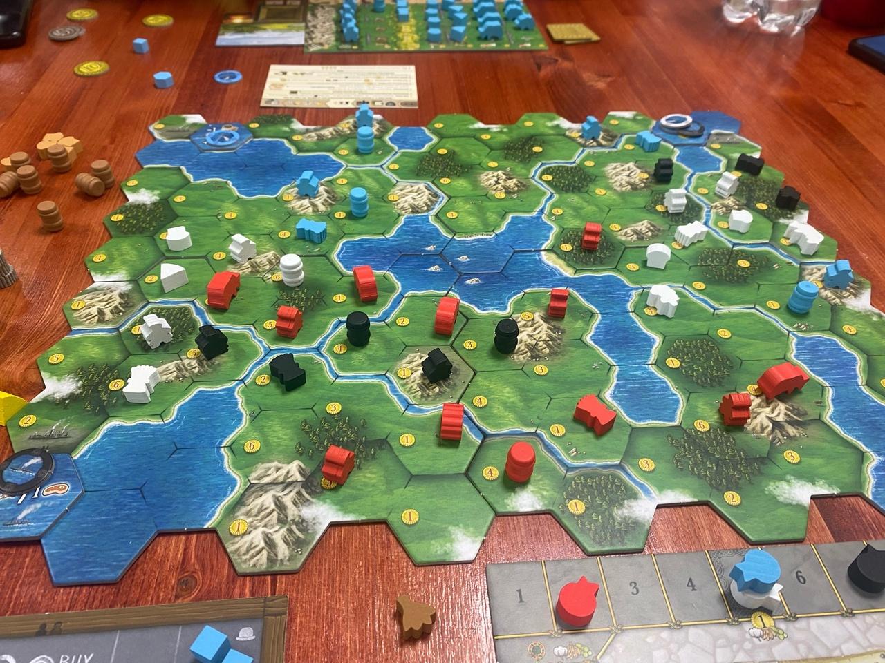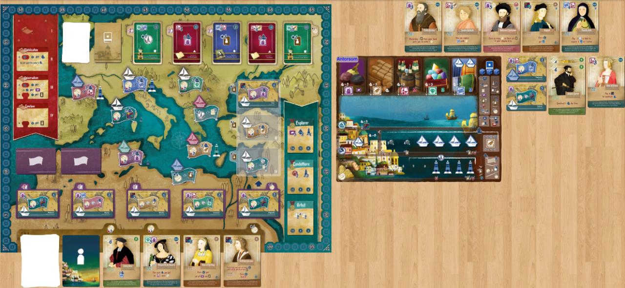 Очень скомканные чувства после одной партии. Хлебокризисное евро, в котором вы чувствуете себя настоящим ответственным торговцем, желающим сделать всё и сразу при постоянно меняющемся и уменьшающимся количеством свободных работников. Ещё и обогнав и не дав сделать всё тоже самое противникам. В игру завезли много всего стандартного, объединив с оригинальной механикой торговли за счёт перемещения кораблей туда-сюда. Из плюсов: красивое оформление, новый взгляд, разные пути к победе (по очкам). Из минусов: возможна перегрузка оперативной памяти, и какая-то невероятная цена.