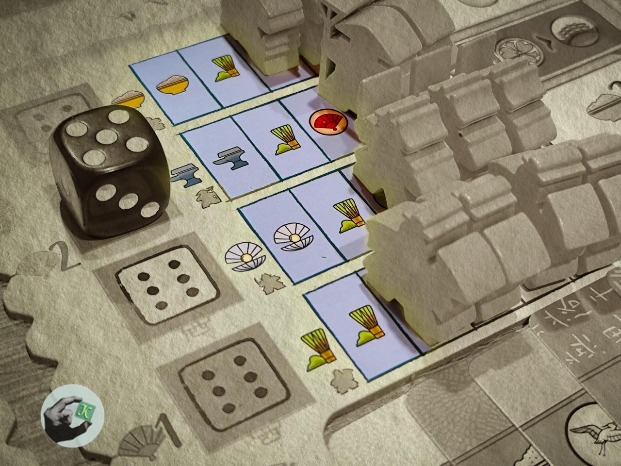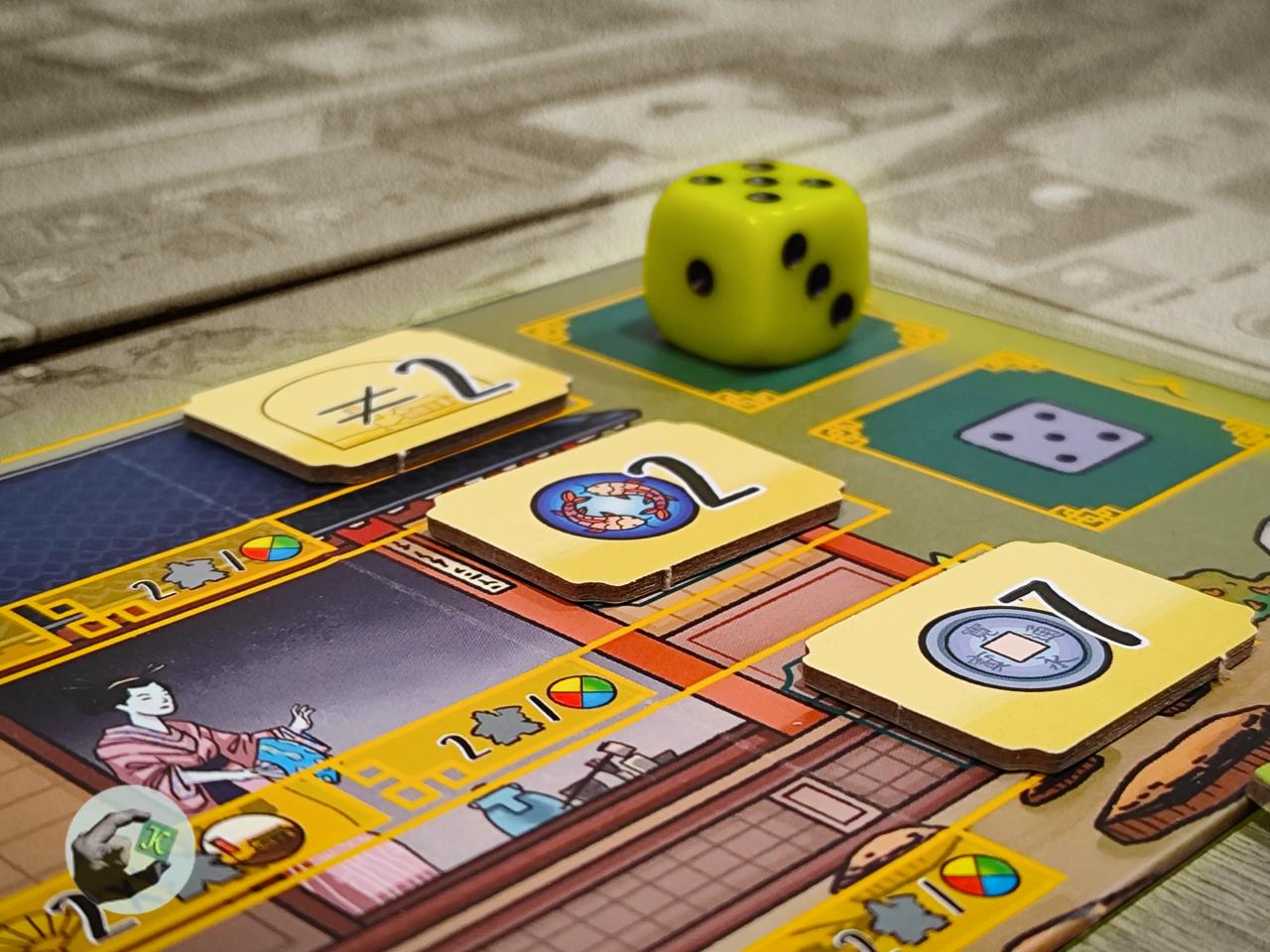 Теперь, ставя кубик на личный планшет, мы не получаем гору ненужных ресурсов одного типа, которые хрен знает куда и зачем (серьёзно, нахера мне 4 риса и две монеты, если всё это можно получить куда выгоднее на поле?). Теперь, одинаковых ресурсов всего три, а всё остальное уже БОЛЕЕ полезные бонусы: от печатей и журавлей (которых в базе таким образом было не получить), до трёх разных ресурсов С ОДНОЙ ЯЧЕЙКИ и победных очков!
