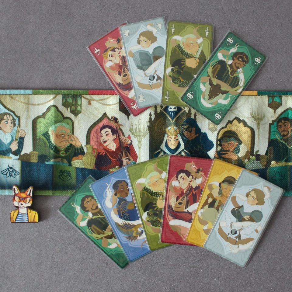 В колоде находятся карты шести разных семей, которые стараются заслужить уважения у королевы.