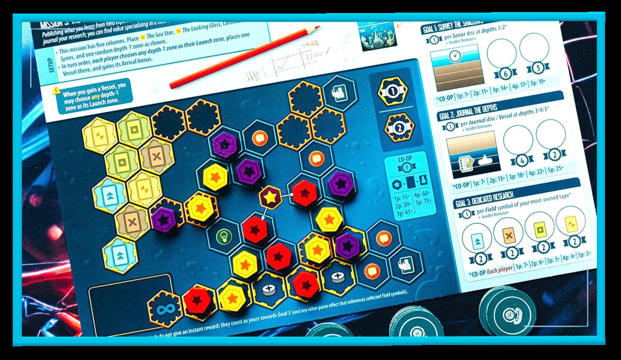 Каждая партия уникальна, ведь состав акваторий, цели и даже правила меняются в зависимости от выбранной миссии. Океан состоит из 37 локаций, каждую из которых предстоит исследовать, прокладывая путь через коралловые рифы и подводные пещеры. А с набором делюкс-улучшений количество локаций вырастет до 40!Но что же делает «Экспедицию» по-настоящему увлекательной? Ходы быстрые — так что никто не заскучает, но при этом возможностей для построения мощного движка и создания эффективных цепочек предостаточно. А освоить игру очень легко.