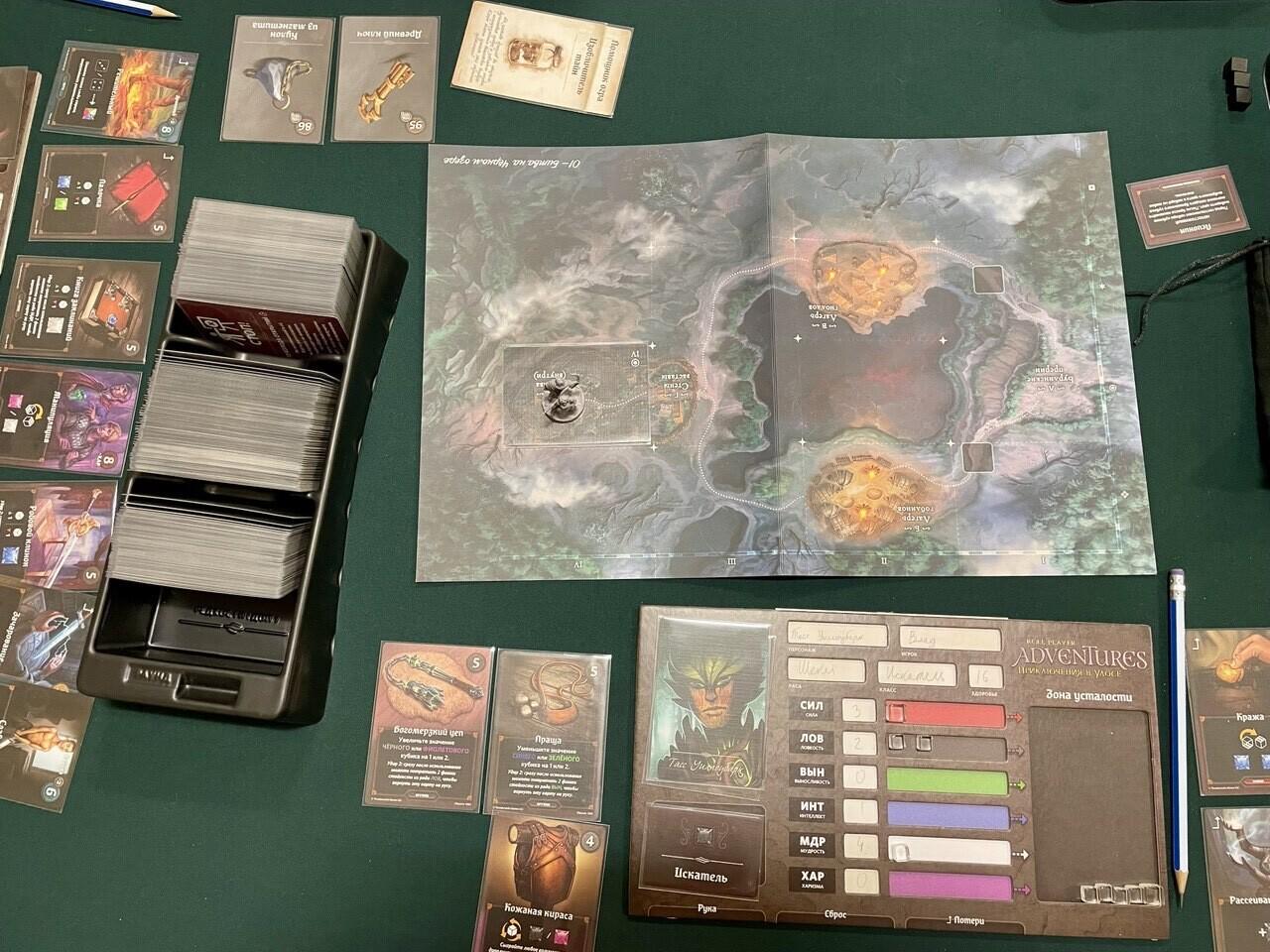 Все проверки и бои – это броски кубиков и последующие манипуляции с ними с помощью карт, способностей, характеристик и жетонов. Особенно разнообразны здесь карты. Вы можете перебрасывать, переворачивать, перекрашивать, добавлять кубы, а также менять их значения при определённых условиях. Некоторые карты работают раз в проверку/бой, некоторые уходят в сброс до отдыха, а некоторые «перезаряжаются» при определённых условиях. И всё это добро вы применяете совместно, в любой последовательности. Обсуждений за столом в такие моменты очень много. «Альфа-игрока» не выявилось — возможно, потому что здесь нельзя уследить за всем. Каждый обязательно вспомнит про какую-нибудь карту или увидит последовательность действий — и предложит часть решения.