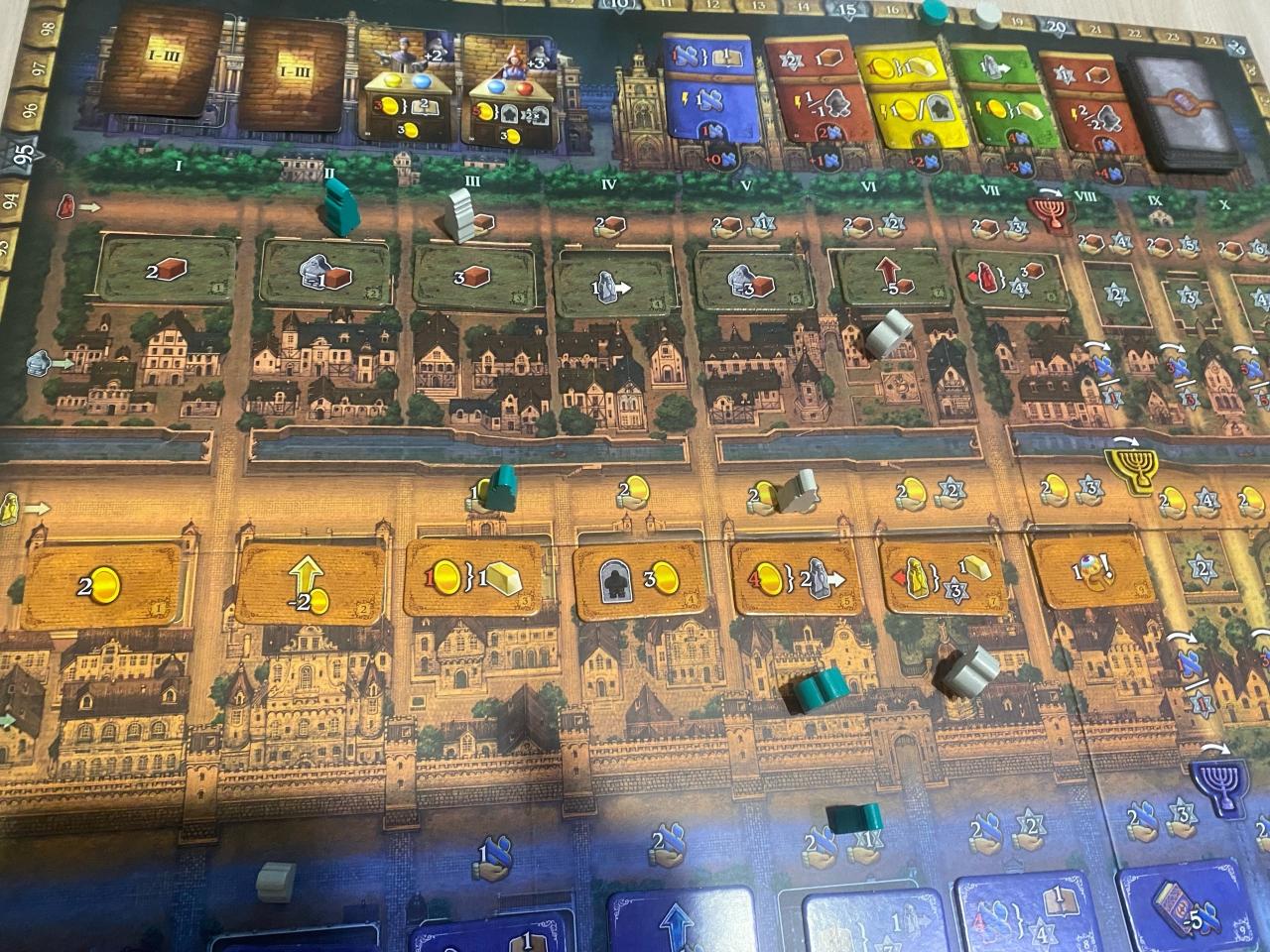Вспоминаю голос со стороны, когда на Ореконе впервые взял эту коробку в руки: "смотри, кто-то в 12 ночи решил в Голема сесть играть!" Через некоторое время коробка была куплена в довесок к Алхимикам (которых я до сих пор не опробовал) и достойно ждала своего часа. И вот, он наступил. Мы с другом посмотрели летсплей от Безнала и начали погружаться в мир старой Праги, её жителей и своих алхимических (вот совпадение) экспериментов.Правила кажется были понятны, но сама игра в первый и пока единственный раз показалась мне сложнее Плотины! С первого же результата диспансера все мои планы покатились в ненужную сторону. Я люблю кризисность, и поэтому оценил всё происходящее. Да и атмосферность и тематичность для меня были в достаточном количестве. Некоторые нюансы правил пришлось узнавать уже в ходе подсчёта очков, но для первой партии это нормально. Пока для меня 4 Лучани из 4. С удовольствием сыграю ещё!