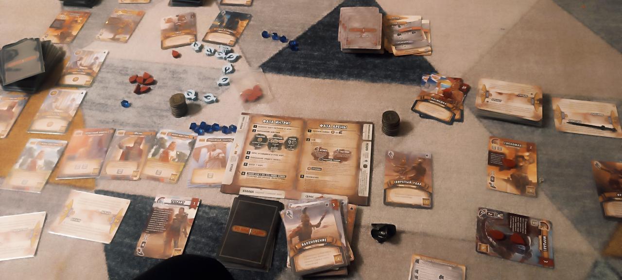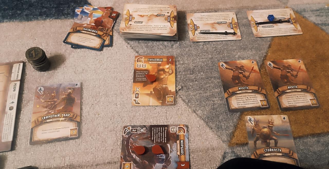 Всем привет, друзья!Три партии. Шесть часов игры. Два часа на партию. Сегодня ночью я погрузился в мир «Во имя славы», играя в соло-режиме с дополнениями «Чемпионы» и «Легенды». Эта игра напоминает гладиаторский бой, где каждый ход — шаг к победе или поражению. В базовой версии «Во имя славы» — это стратегическая игра для двоих, где вы и ваш соперник сражаетесь на арене, как два титана. Цель игры — первым набрать 6 очков славы, чтобы стать героем арены. Основная механика игры — это колодострой. Представьте, что вы собираете армию из карт-гладиаторов, как конструктор из деталей. В начале партии вы получаете стартовую колоду и выбираете 7 карт. Каждый ход начинается с фазы «Интриг» — это как подготовка к бою, где вы можете усиливать своих гладиаторов или ослаблять противника. Затем начинается битва, где каждый гладиатор сражается с врагами, как в эпическом сражении. Когда кровожадность гладиаторов достигает уровня насмешек, начинается бой. Представьте, что гладиаторы — это бойцы, которые сражаются не только силой, но и хитростью. Во время боя игроки могут использовать способности своих гладиаторов. Это может быть удар щитом, чтобы защитить себя, или меткий бросок копья, чтобы ослабить врага. Почти каждое ваше действие открывает новую карту из колоды Лудус Магнус. Эти карты могут как помочь, так и помешать вам. Я играл на простом уровне сложности, но каждый бой был напряжённым, как тонкая нить, которая может порваться в любой момент. Дополнение «Чемпионы» — это как введение новых супергероев в игру. Эти гладиаторы обладают уникальными способностями, которые можно улучшать, делая их ещё сильнее. Из минусов хочу отметить, что иногда обозначения действий противника могут быть непонятными.Игра «Во имя славы» в базовом дуэльном режиме уже оставила у меня яркие впечатления. Но соло-режим и дополнения делают её ещё интереснее, как новые краски на старой картине. Эта игра — как путешествие по арене, где каждый ход — новый вызов, а каждая победа — шаг к славе.#настольныеигры #обзор #настолка