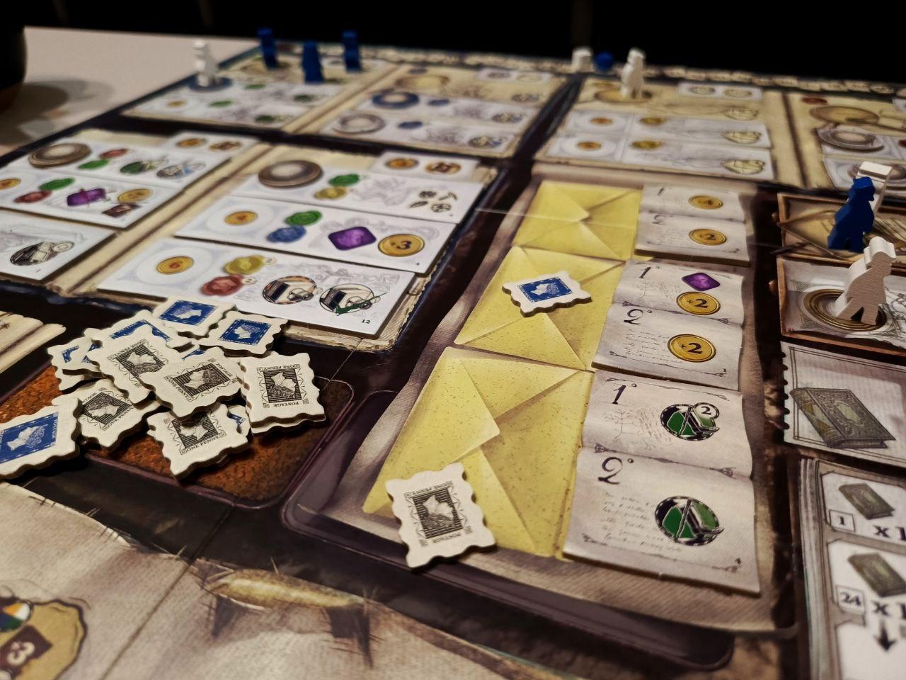 - Отправлять корреспонденцию. Выложив выбранное количество конвертов, вы в конце раунда получаете бонус, указанный на жетоне корреспонденции. Тот игрок, который положил больше писем, получает возможность выполнить верхнее действия, а другой - нижнее.