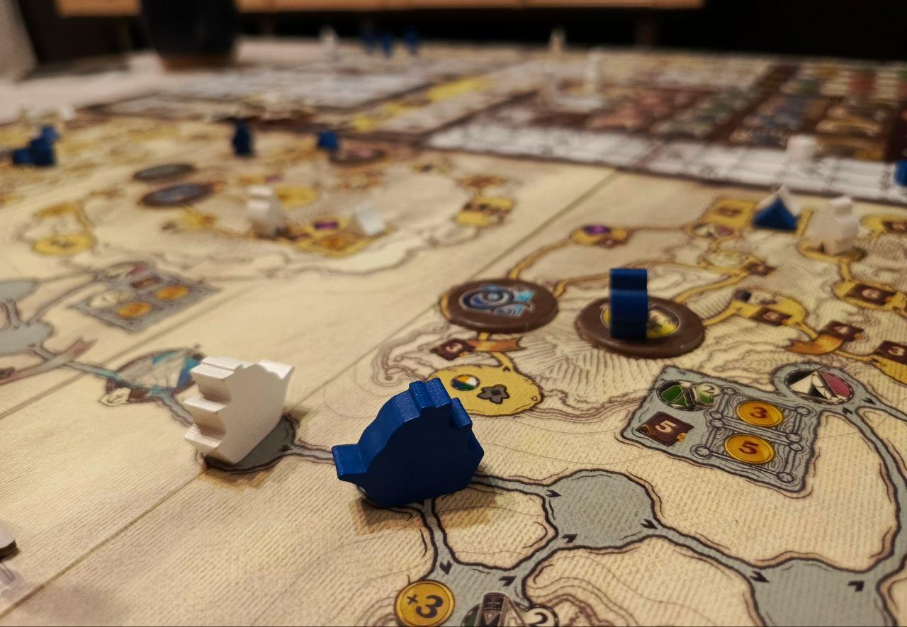 - Разблокирование ячейки линзой. При этом действии игрок выкладывает свою линзу в выбранное свободное место на карте, платит ее цену (если нужно - штрафы), а затем мгновенно совершает это же действие. На выставленную линзу в последствии может встать работник любого игрока (конечно, если у него есть нужное количество сургучных печатей), а владелец линзы за это получает 1 монету из банка.