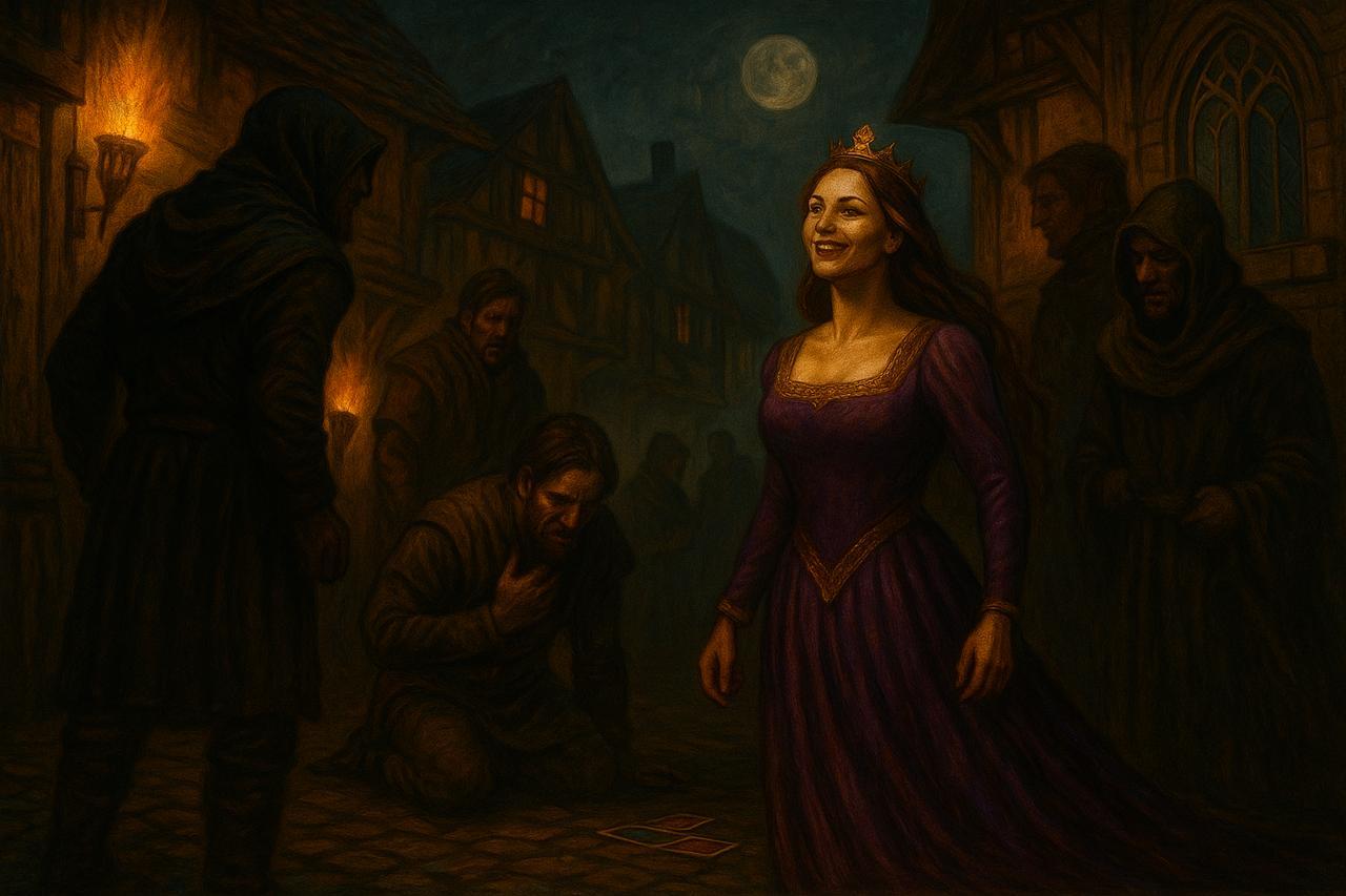 Королева: вытянуть и посмотреть 2 карты в руке оппонента, он сбрасывает всех Королев и берёт столько же карт.