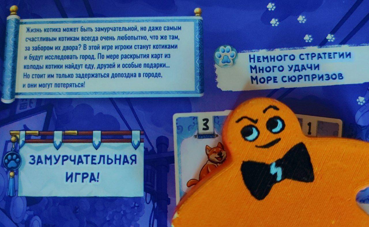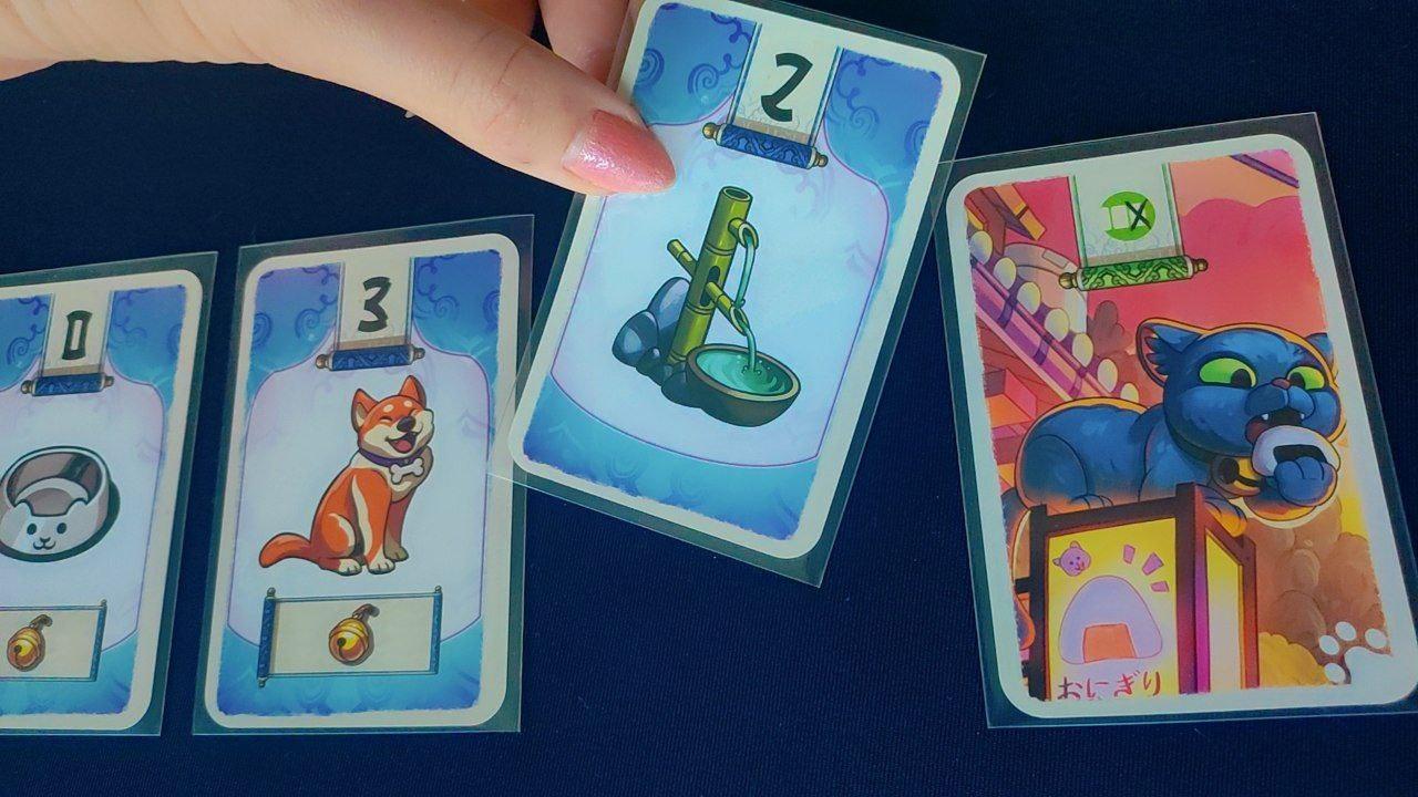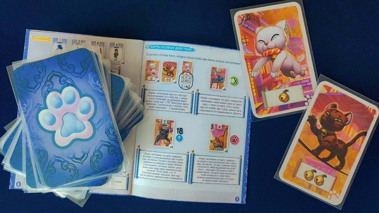3) специальные карты с котиками-киотиками, которые предоставляют игроку дополнительные способности: чёрный котик увеличивает лимит очков, необходимых для проигрыша (с 13 до 18), синий котик убирает самую правую карту в ряду игрока, рыжий полосатик позволяет один раз отказаться от получения карты, а белый котик просто приносит игроку желанные колокольчики.