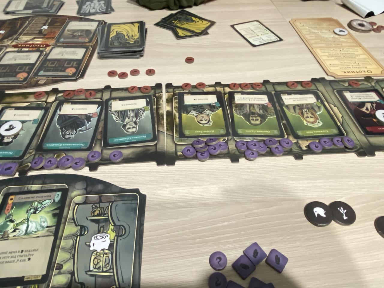 Вспомним, какие у меня были ощущения. Сначала ничего не предвещало беды и первые пара партий прошли относительно безболезненно, но потом я поиграл за Ведьму. Основной момент здесь: как обхитрить оппонента. Действия Охотника кажется более прямолинейны и он готовится ко всему и собственно занимается тем, что доставляет неудобства Ведьме. Играя за неё мы будем решать: хотим ли мы рискнуть и выдать себя сразу, или же попытаться полностью запутать Охотника и провести широкомасштабную суету во всём поселении.