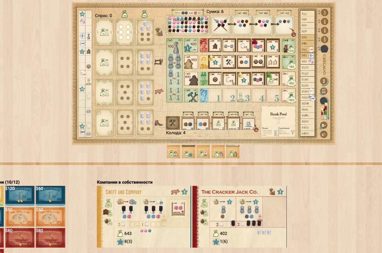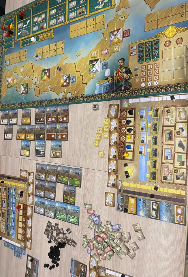 Честно говоря, противоречивые ощущения, потому что играл пошагово на бга и не смог оценить целостный процесс по-достоинству, так же было и с el Grande к сожалению. Играл после просмотра летспеля от Carton Space и…в моей игре кое что было не так. А именно долгая стадия торгов. Купле-продажа акций противника из запаса в банк с соответствующим снижением цены его акций будто бы обязательная часть геймплея каждого раунда, и это не прикольно. В какой-то момент возникает понимание, что фирмы не твои родные, а ты просто ими управляешь, и это тоже значимое отличие от того, что мы привыкли. Но всё это не говорит о том, что игра плохая. Она интересная, но непривычная. Высчитать текущий счёт бывает непросто, улучшать и развивать компании, соревнуясь за ресурсы и места, а так же рейтинг - азартно и тоже непросто — и всё это говорит о том, что нужно бы попробовать ещё раз либо вживую, либо в реальном времени. Пока что ставлю на четвёртое место.