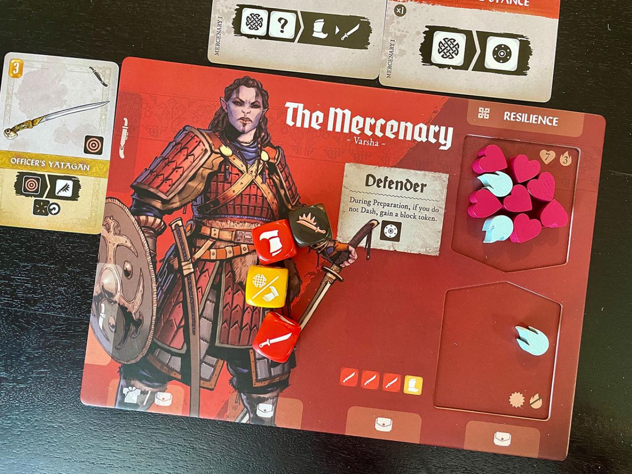 Аристократ — персонаж, владеющий двумя стойками. Переключаясь между ними, он становится либо более защищённым, либо более ловким и проворным. Из всей троицы это самый быстрый герой, этакий неуловимый мститель, словно итальянский скакун, порхающий между врагами, нанося небольшие, но частые удары. Да и стрелять он тоже умеет. Получилось весьма интересно, а развитие персонажа как будто подталкивает к тому, чтобы он и дальше ловко перемещался по полю боя, наносил урон и защищался, потенциально используя до пяти кубиков за ход. Иронично, что классическая "обратка" (урон, возвращаемый атакующему) досталась именно ему, а не воину, намекая на некий хитрый защитный манёвр. В любом случае, играть им было весьма увлекательно.