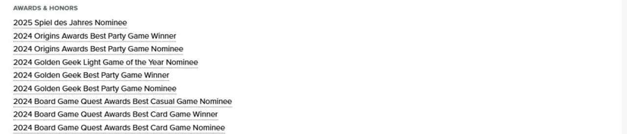 «Величайшая карточная игра всех времен». Чье решение? Может сайт BoardGameGeek присудил данный титул? Да нет, такой у них отсутствует, да и среди карточных игр ее место далеко не первое. Может, большое количество премий отдали свой голос игре? Да нет, Board Game Quest, Golden Geek и Origins Awards отдали приз игре в номинациях лучшей карточной/пати игры, а вот Spiele Des Jahres только номинировал. При всем лично моем скепсисе по поводу наград, четыре премии как-то скромно для «величайшей карточной игры всех времен». Рядовой игрок ожидает бОльших регалий, закрепление игры в пантеоне славы и то, что она оказалась на нем довольно быстро, меньше чем за год. Разумеется, это неуклюжая, в какой-то степени, рекламная уловка, возможно такого мнения об игре сами авторы, возможно это шутка, возможно это ироничное высказывание в отношении самих себя, кто знает? Люди отнесутся по-разному: если игрок менее опытный или совсем неопытный, то игра с такой припиской его заинтересует, он навряд ли будет лезть в интернет чтобы почитать об игре; а игрок опытный либо пройдет мимо, поскольку это филлер, а матерый настольщик только за хардкор, либо купит и оценит простоту и увлекательность. Это не спойлер моего мнения, об этом позже.